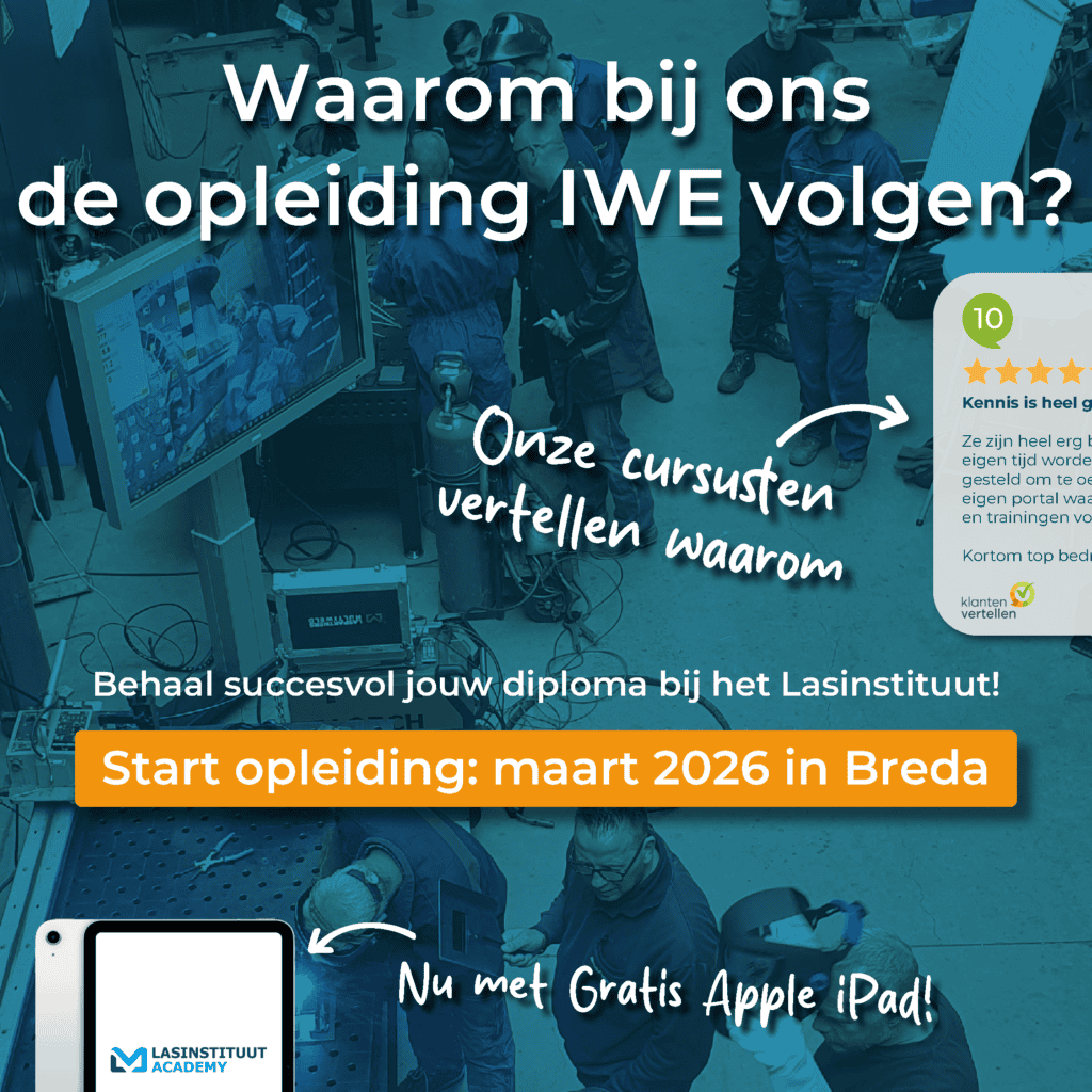 Voor de opleiding International Welding Engineer (IWE) hanteert het Lasinstituut jaarlijks twee instroommomenten; in september & in maart. Eind Q1 trappen wij af op hoofdlocatie Breda met de eerste module van deze pittige maar bijzonder leerzame opleiding. De IWE-opleiding is een post-HBO en deelnemers dienen dan ook te beschikken over een bachelor-diploma in een relevante (technische) richting. Met het diploma IWE op zak behaal je de kwalificatie Lascoördinator C (comprehensive), waarmee je alle verantwoordelijkheden zoals vastgelegd in de EN-14731 mag dragen.